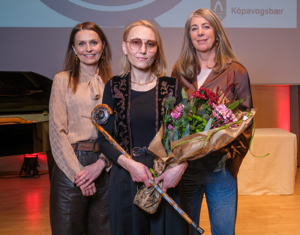 Ásdís Kristjánsdóttir, bæjarstjóri, Una Björk Kjerúlf, handhafi Ljóðstafs Jóns ú Vör 2026 og Elísabet Berglind Sveinsdóttir, formaður Menningar- og mannlífsnefndar Kópavogs