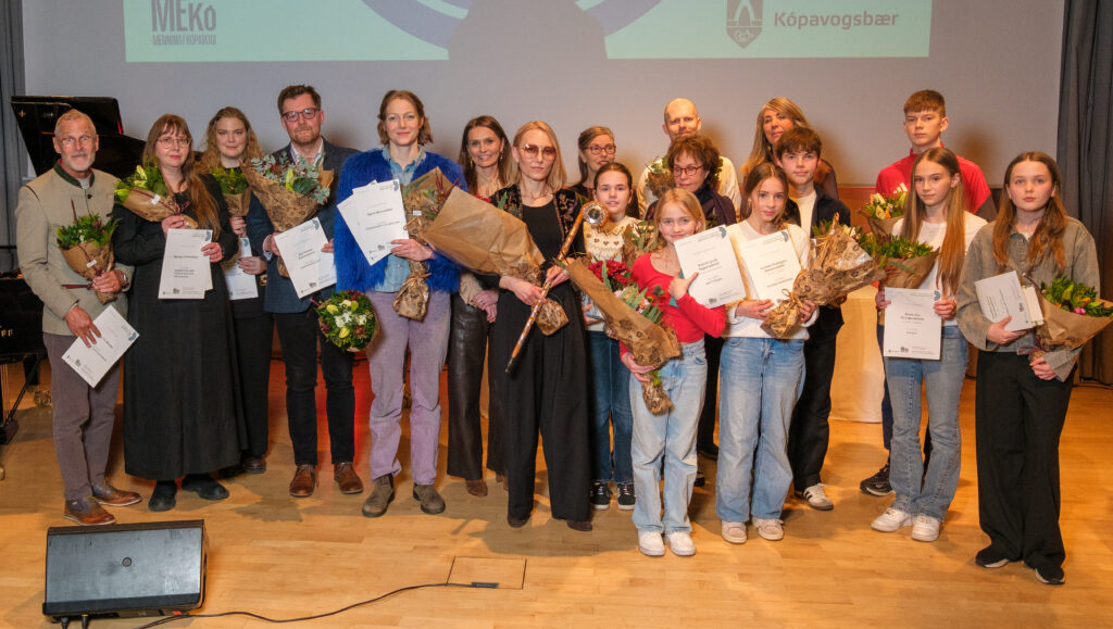 Verðlauna- og viðurkenningarhafar ásamt Ásdísi Kristjánsdóttur, bæjarstjóra, Elísabetu Berglindi Sveinsdóttur, formanni Menningar- og mannlífsnefndar og dómnefndar Ljóðstafsins 2026
