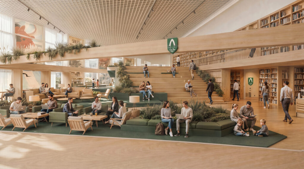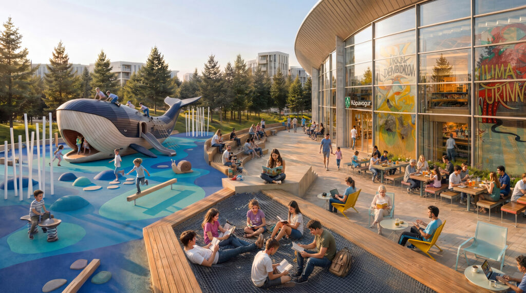 Fyrirhuguð menningarmiðstöð verður staðsett í um 900 m² rými í austurhluta Smáralindar og er henni ætlað að verða opið og lifandi rými sem sameinar bókasafn, viðburðaaðstöðu og skapandi vinnusvæði fyrir fjölbreyttan hóp notenda.