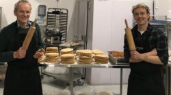 Feðgarnir koma með hátíðarstemmingu í safnaðarheimilið.