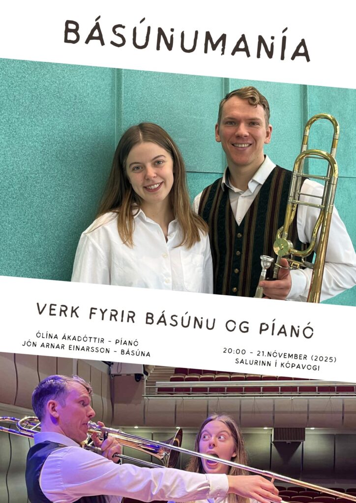 Jón Arnar Einarsson básúnuleikari og Ólína Ákadóttir píanóleikari flytja saman verk fyrir píanó og básúnu. Þetta eru aðrir tónleikarnir í seríunni BásúnuMANÍA, sem hófust í september 2025.