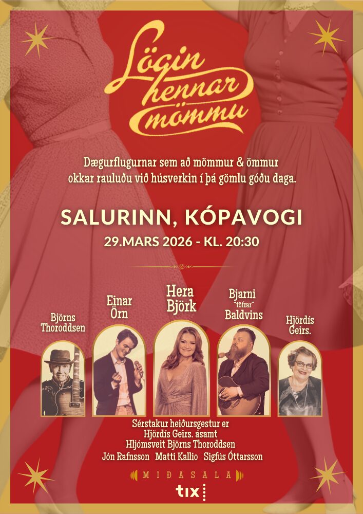 Söngvararnir Hera Björk, Einar Örn og Bjarni “Töfrar” Baldvins leiða hér saman hesta sína og flytja lögin sem að mömmur & ömmur rauluðu við heimilistörfin á 5.,6. og 7.áratug síðustu aldar. Þau syngja lögin, segja sögurnar og rifja upp alla gömlu góðu hittarana á borð við Heyr mitt ljúfasta, Björt mey, Lóa litla, Fjórir kátir, Halló, Þrek og tár, Bjössi á Mjólkur, Vegir liggja, Vertu ekki að horfa ofl. ofl. ofl.! Og þetta gera þau undir dillandi hljóðfæraleik hljómsveitar meistara Björns Thoroddsen, en hana skipa auk gítarmeistara Björns, Matti Kallio á píanó, Sigfús Óttarsson á Trommur og Jón Rafnsson á bassa.