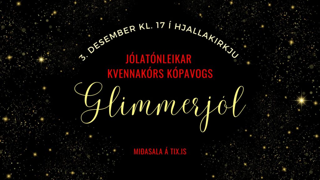 Glimmerjól, jólatónleikar Kvennakórs Kópavogs, verða haldnir í Hjallakirkju í Kópavogi þann 3. desember næstkomandi klukkan 17.00. Í kórnum eru tæplega 50 konur sem syngja undir stjórn Margrétar Eirar. Sérstakur gestasöngvari tónleikanna í ár verður Bjarni Arason stórsöngvari sem mun syngja vel valin jólalög ásamt kórnum. Að venju verður einvalalið tónlistarfólks með okkur í för sem […]