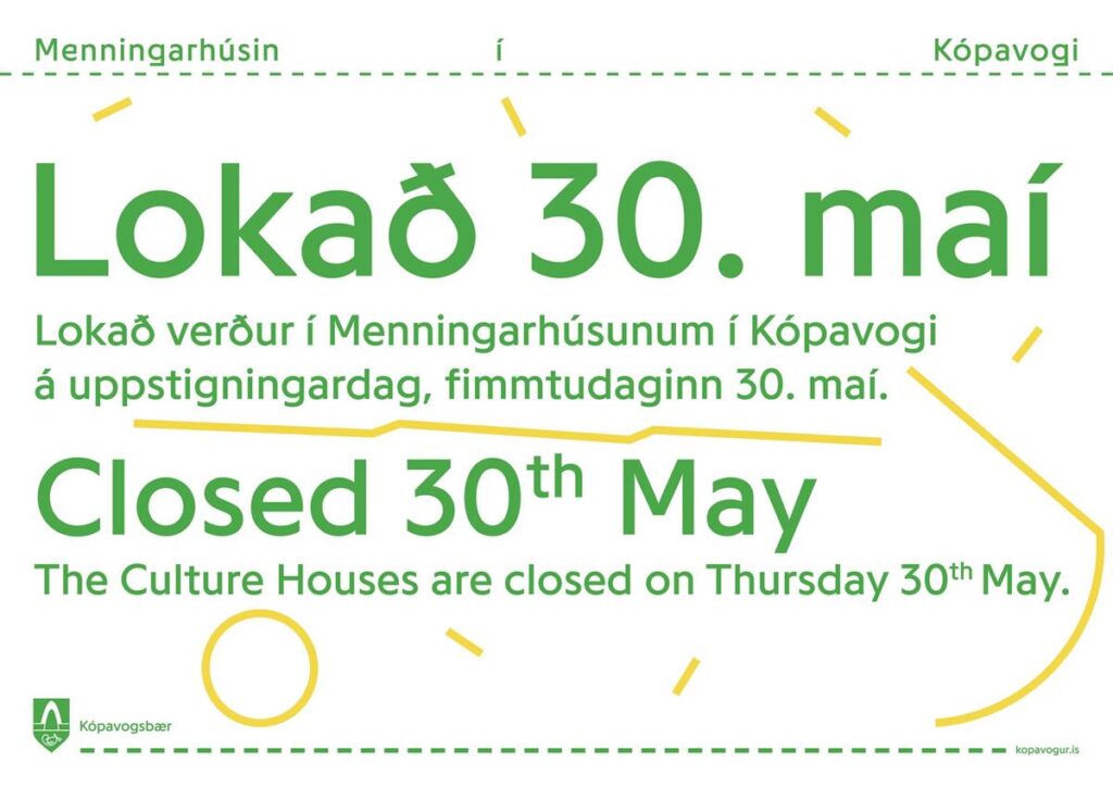 Gerðarsafn er lokað 30.maí, uppstigningardag.