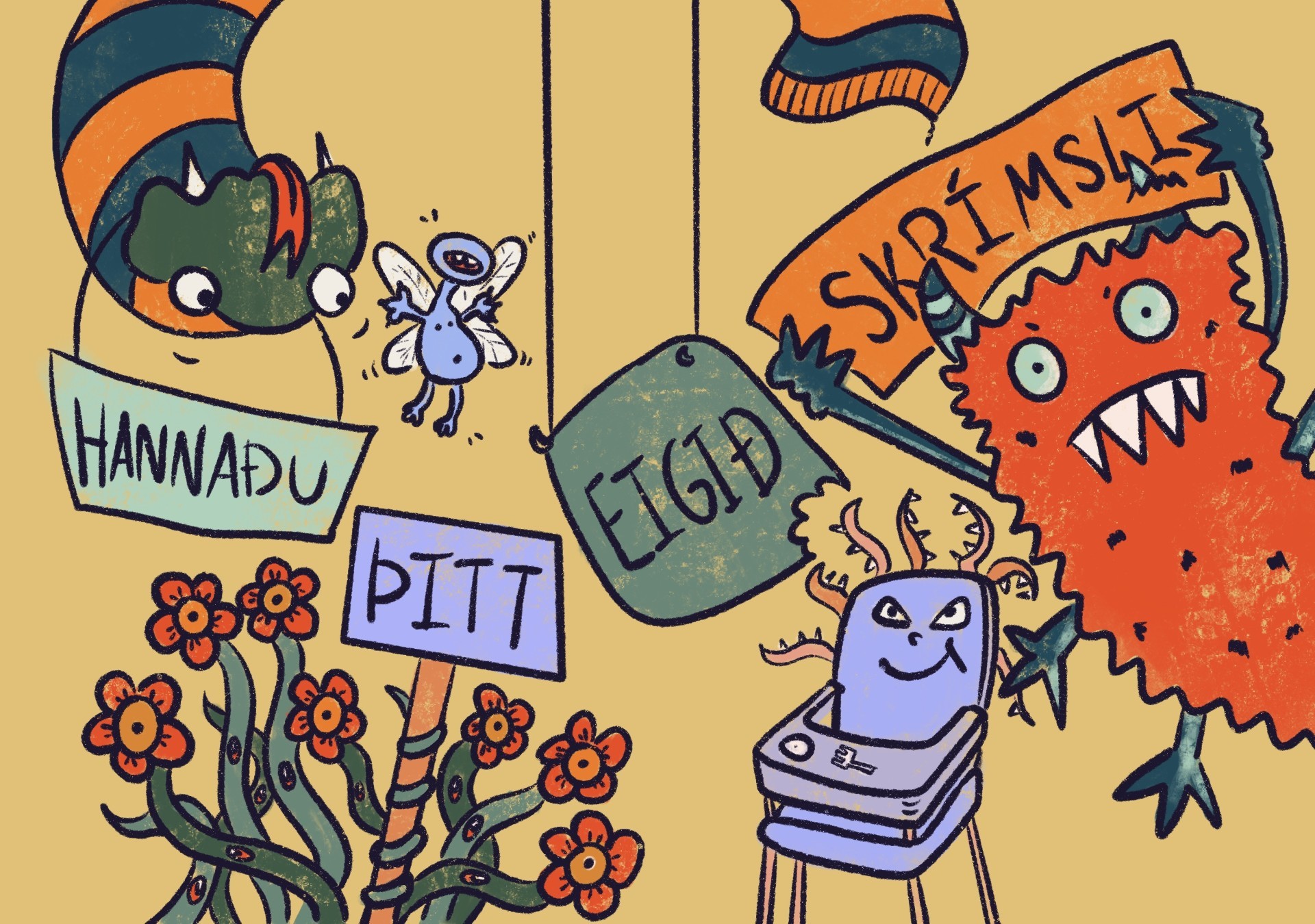 Í smiðjunni gefum við ímyndunaraflinu lausan tauminn og sköpum okkar eigin skrímsli og furðuverur. Það er Alexandra Dögg Steinþórsdóttir, rit- og myndhöfundur sem leiðbeinir og eru börn sérstaklega hvött til að skapa skrímsli út frá eigin áhuga og reynslu og skoða hvernig ímyndunaraflið getur breytt hversdagslegum fyrirbærum í furðuverur